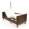 Справа и слева в головной части кровати расположены специальные отверстия для установки инфузионной стойки и других принадлежностей. В набор входит инфузионная стойка и штанга для подтягивания пациента с регулируемой по высоте треугольной ручкой.