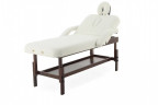 Каркас стола выполнен из стального сплава. Этот материал не подвержен коррозии, не портится от попадания влаги, не деформируется. В качестве наполнителя используется поролон толщиной 120 мм. Он не проминается, хорошо сохраняет свою форму и оказывает должную поддержку. Обивкой служит винил-люкс. Этот материал отличается высоким качеством. Он не протирается и не трескается, не портится от попадания влаги и косметических средств. Кроме того, он приятен на ощупь, не вызывает тактильного дискомфорта или аллергии. В комплекте есть не только подголовник, но также и валик под ноги.