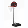 Детская мобильная стойка для игры в баскетбол с щитом из полиэтилена. Для установки в помещении и на улице. В основание размером 75 х 45 х 13 см необходимо залить воду или засыпать песок объёмом 0,043 м 3  (43 литра). Телескопическая регулировка высоты от 165 до 210 см (по кольцу). Диаметр стойки (трубы, на которую крепятся щит и основание) - 4,5 см. Баскетбольное кольцо 38 см, цвет оранжевый. Всепогодная нейлоновая сетка в комплекте