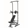 Многофункциональный тренажер с встроенным весовым стеком. Позволяет выполнять комплекс упражнений на различные группы мышц. Дополнительно тренажер имеет брусья для отжимания и скамью для пресса с гантелями по 1,5 кг с регулировкой по углу наклона.